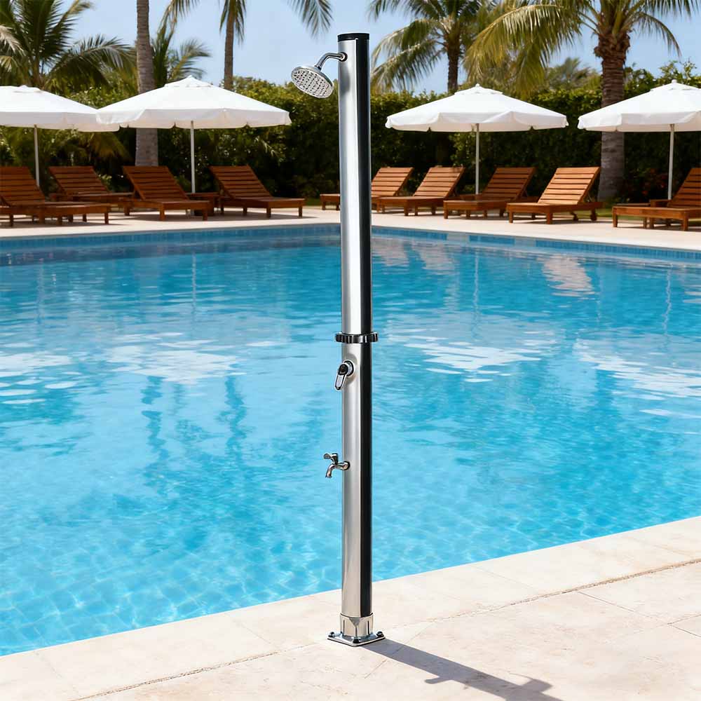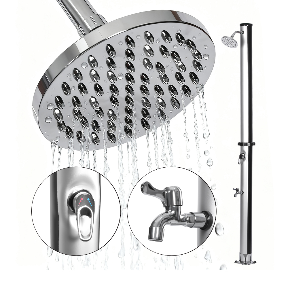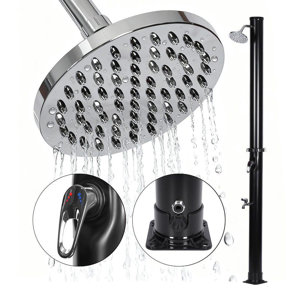 Deartha do chompord lasmuigh, tá an colún cithfholcadh gréine pvc gairdín lasmuigh LY18L01 18L seo le bonn oiriúnach do ghairdíní, limistéir cois na linne, agus campáil, rud a léiríonn ceann de na nuálaíochtaí is déanaí maidir le huisce a théamh gan ionchur fuinnimh seachtrach. Ceadaíonn sé rialú éasca ar theocht an uisce trí mheascóir aon-luamhán a chumasc uisce píopa cithfholcadh téite le huisce píobáin fuar, ag cinntiú taithí chompordach. Tógtha le bonn PVC marthanach le haghaidh cobhsaíochta agus tacaíochta iontaofa, tá ceann cithfholcadh mór báistí aige freisin le huillinn inchoigeartaithe 180 ° trína chomhpháirteach liathróid chomhtháite, ag soláthar éifeacht fuaraithe athnuachana. Tá an socrú tapa agus simplí, rud a fhágann go bhfuil sé ina bhreis áisiúil do shocruithe éagsúla lasmuigh.