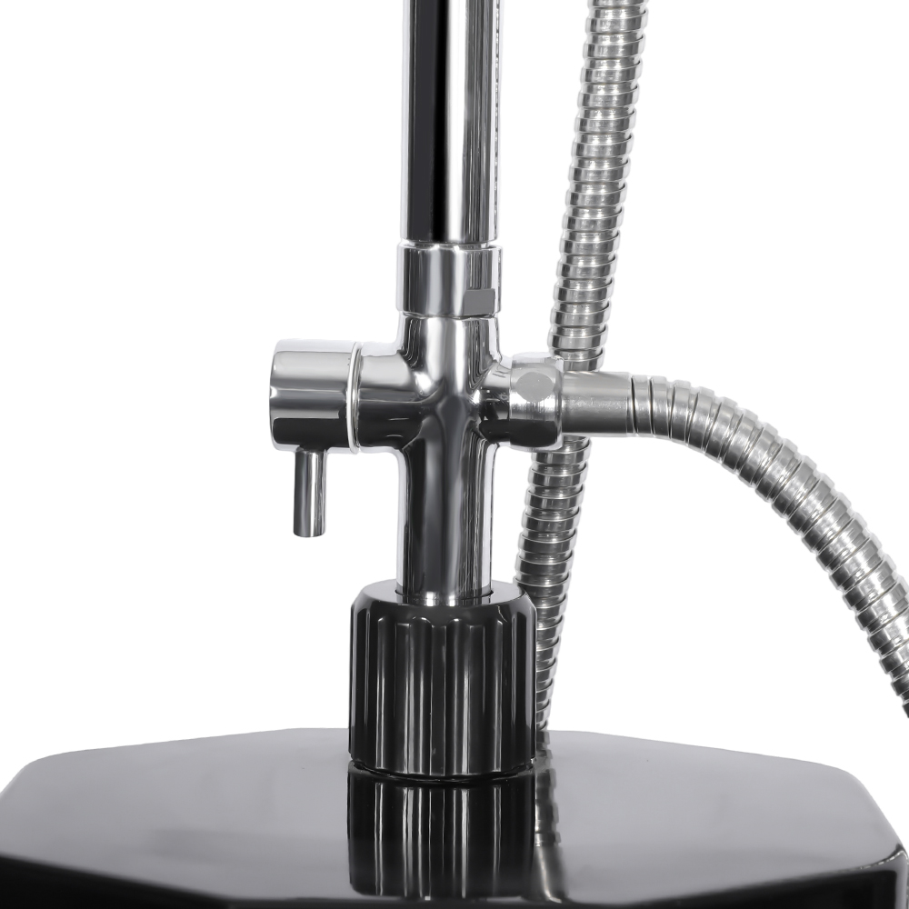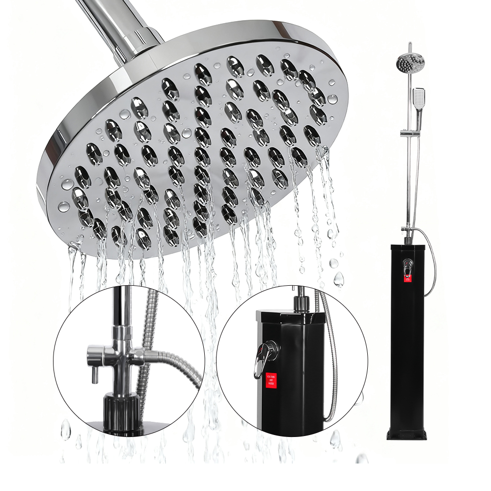 Tá an cithfholcadh gréine pvc taobh linne LY18L09-B 18L seo le cithfholcadh ceann cruach dhosmálta soghluaiste deartha chun compord agus scíthe a thabhairt d'éagsúlacht suíomhanna lasmuigh, cibé acu sa ghairdín, ag an linn snámha, nó ar thurais champála, ag tairiscint réiteach nua-aimseartha chun taitneamh a bhaint as uisce te gan gá le foinsí fuinnimh seachtracha. Tá ceann cith báistí ró-mhór ann le hailt liathróid ionsuite a cheadaíonn coigeartú éasca suas go dtí 180 °, a chinntíonn solúbthacht in úsáid agus a dhéanann an socrú simplí. Feabhsaíonn an ceann cithfholcadh solúbtha ar stíl na foraoise báistí an t-eispéireas trína ligean duit an sreabhadh uisce a rialú go héasca, rud a chruthaíonn ceint soothing, spa-mhaith cosúil le seasamh faoi eas nádúrtha. Le chéile, cuireann na gnéithe seo eispéireas cithfholcadh athnuachana agus inoiriúnaithe ar fáil, rud a fhágann go bhfuil sé oiriúnach do dhuine ar bith atá ag iarraidh praiticiúlacht agus scíthe lasmuigh.