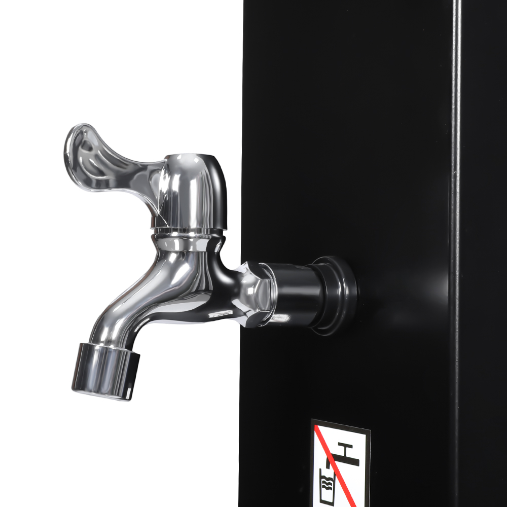 Tá an cithfholcadh gréine lasmuigh ard-acmhainn LY35L04-SS seo deartha chun eispéireas snámha compordach agus áisiúil lasmuigh a sholáthar trí leas a bhaint as cumhacht solas na gréine chun uisce a théamh suas go dtí thart ar 60 ° C, rud a chuirfeadh deireadh leis an ngá atá le leictreachas. Ní dhéantar iarracht an píopa cithfholcadh a líonadh - ní gá ach píobán caighdeánach gairdín a nascadh, agus tá an cithfholcadh réidh le húsáid. Ar mhaithe le caoithiúlacht bhreise, coinníonn raca miotail ionsuite bunriachtanais cithfholcadh cosúil le glóthach nó seampú laistigh de rochtain éasca, agus cinntíonn poll draen a chuirtear go smaointeach ag bun an uisce go tapa agus go héifeachtach, rud a chuireann cosc ar uisce seasta. Tá an t-aonad iomlán le chéile trí na codanna a scriú go daingean le chéile, ag cinntiú struchtúr cobhsaí, agus le haghaidh oibriú sábháilte i dtimpeallachtaí lasmuigh, tá gá le ancaireacht cheart ar an talamh. Chun suiteáil agus úsáid a dhéanamh simplí, tá treoracha cuimsitheacha ilteangacha san áireamh, rud a fhágann go mbeidh rochtain ag úsáideoirí i réigiúin éagsúla air.