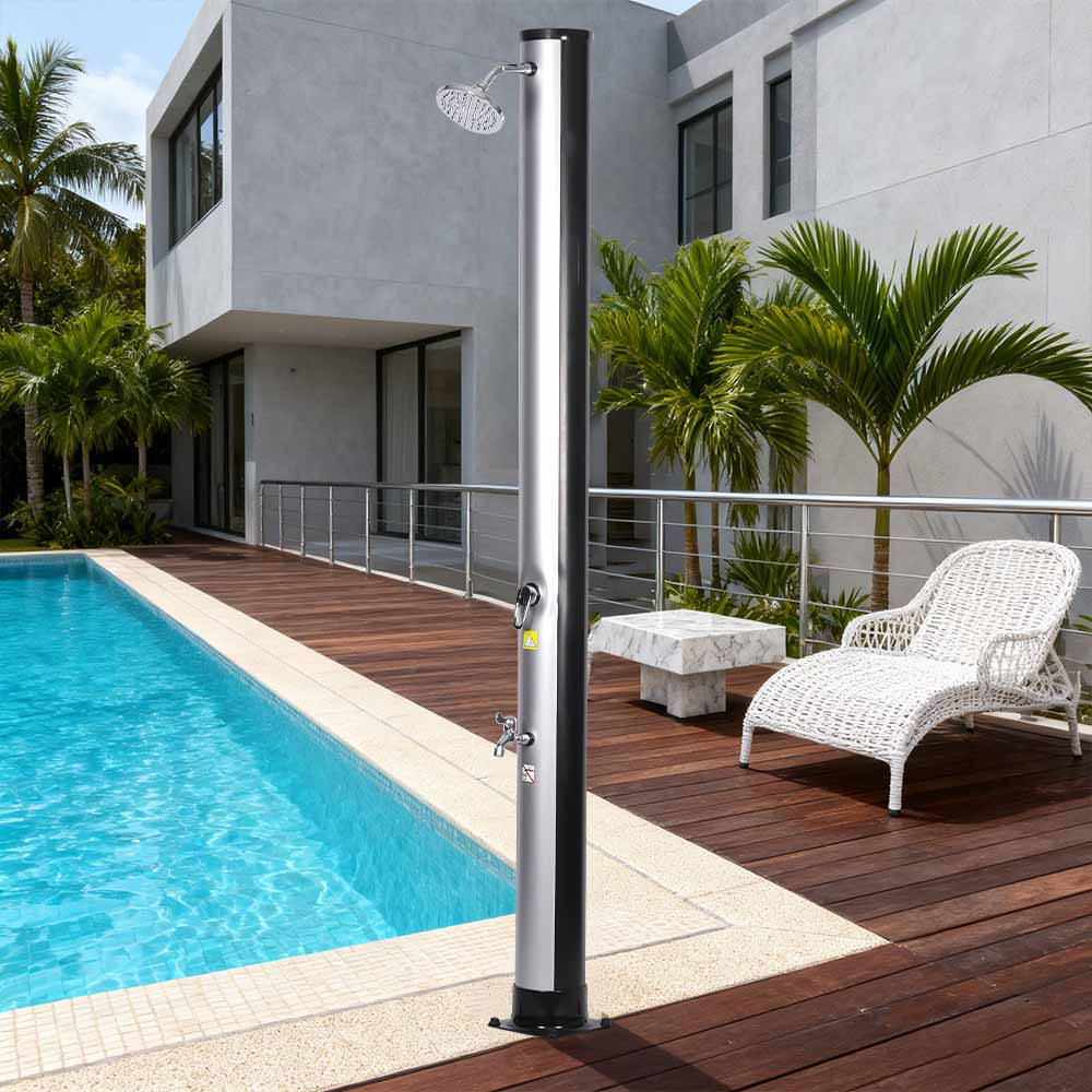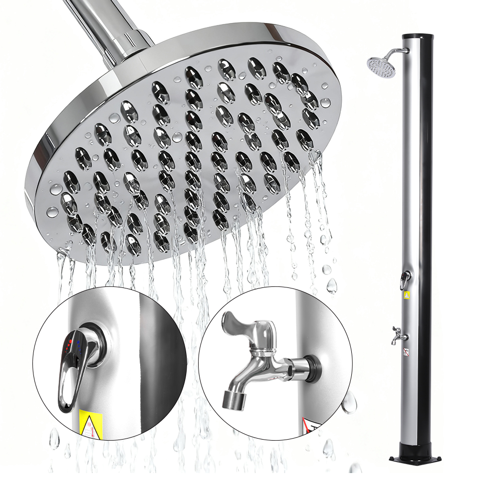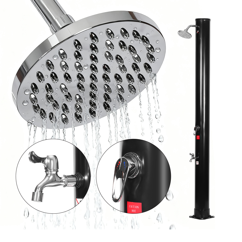 Úsáideann an píopa cithfholcadh flaithiúil den chithfholcadh gréine iniompartha LY35L06 lasmuigh seo atá neamhdhíobhálach don chomhshaol cumhacht na gréine uisce a théamh suas go dtí 60 ° C, nach dteastaíonn aon leictreachas uaidh agus cuireann sé réiteach cairdiúla don chomhshaol le haghaidh snámha lasmuigh. Níl ort ach píobán gairdín caighdeánach a nascadh chun an píopa cithfholcadh a líonadh, agus is féidir leis an teaghlach ar fad taitneamh a bhaint as cith athbheochan sa ghairdín, ag an linn snámha, nó ar thuras campála. Coinníonn tráidire miotail phraiticiúil ionsuite bunriachtanach cithfholcadh cosúil le gallúnach agus seampú laistigh de rochtain éasca, agus cuireann sliotáin draenála ag an mbun cosc ar uisce ó chomhthiomsú, ag cinntiú eispéireas glan taitneamhach. Ligeann an ceann cithfholcadh báistí rothlach 360 °, atá suite ar chomhpháirteach liathróid chomhtháite, duit treo an tsreafa uisce a choigeartú gan stró, rud a chruthaíonn mothú taitneamhach fuaraithe, agus soláthraíonn an sconna sruthlaithe coise breise bealach áisiúil chun athnuachan tapa a dhéanamh. Deartha ar mhaithe le háisiúlacht, is féidir an cithfholcadh seo a dhíchóimeáil go héasca le haghaidh stórála dlúth, coigilte spáis le linn an tséasúir lasmuigh nó le haghaidh iompair agus tú ag taisteal.