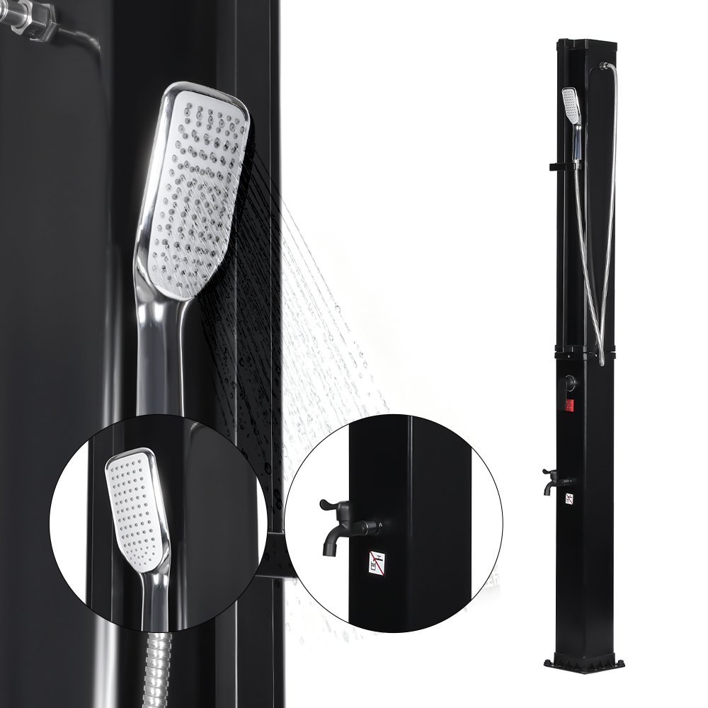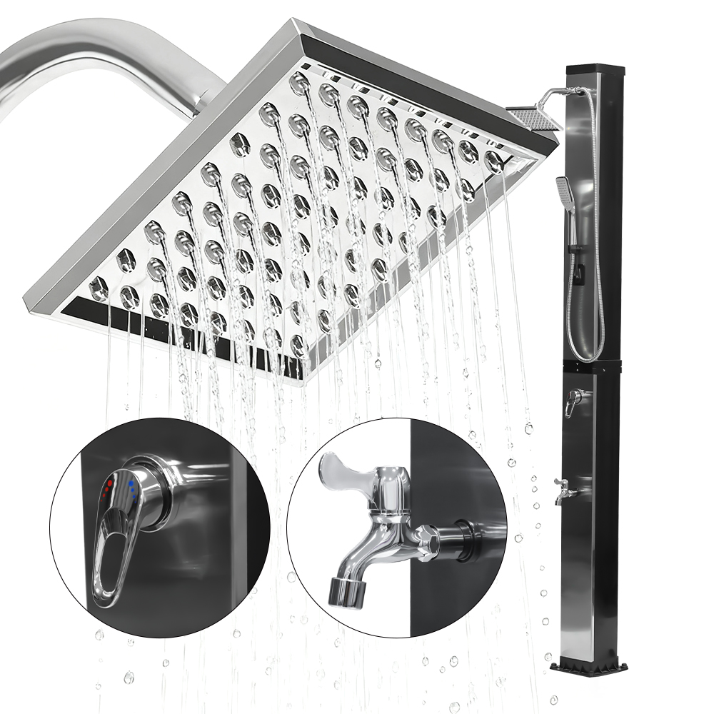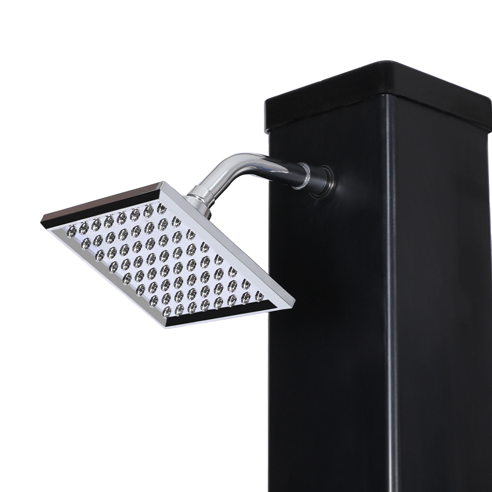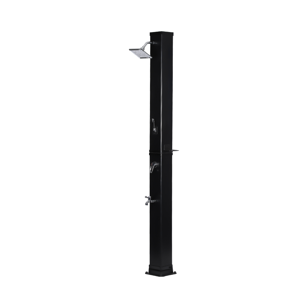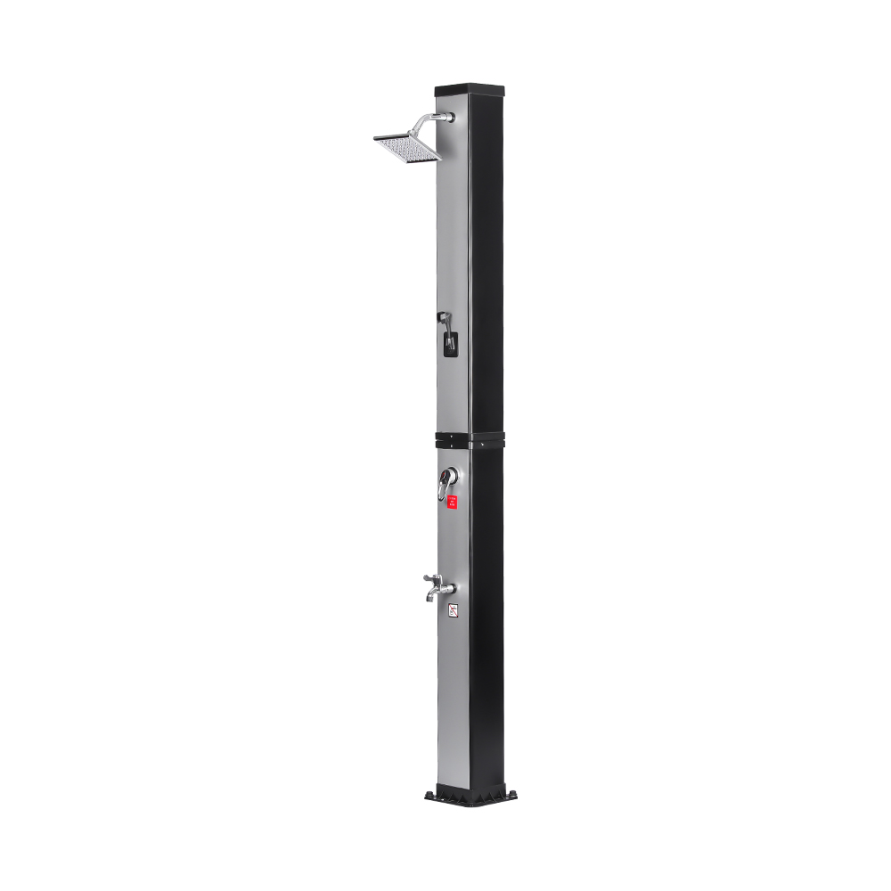 Ní úsáideann an cithfholcadh gréine ilfheidhmeach mór-acmhainn LY35L07 seo ach solas na gréine chun uisce a théamh suas go dtí 60 ° C, ag soláthar bealach coigilte fuinnimh agus neamhdhíobhálach don chomhshaol chun taitneamh a bhaint as snámha lasmuigh. Tá sé simplí é a líonadh - ní gá ach píobán caighdeánach gairdín a nascadh leis an góilín, agus éiríonn an píopa cithfholcadh réidh le húsáid go tapa. Tugann seilf miotail ionsuite áit áisiúil chun glóthach cithfholcadh agus bunghnéithe eile a stóráil, agus cinntíonn poill draenála ag an mbonn go sreabhann uisce go héifeachtach, agus an limistéar á choinneáil tirim agus slachtmhar. Deartha le solúbthacht i gcuimhne, tá an cith gréine seo foirfe do shuíomhanna éagsúla, cibé acu ar an trá, in aice leis an linn snámha, i dteach saoire, óstán nó bungaló. Ligeann a struchtúr solúbtha dó oiriúnú do thimpeallachtaí éagsúla.