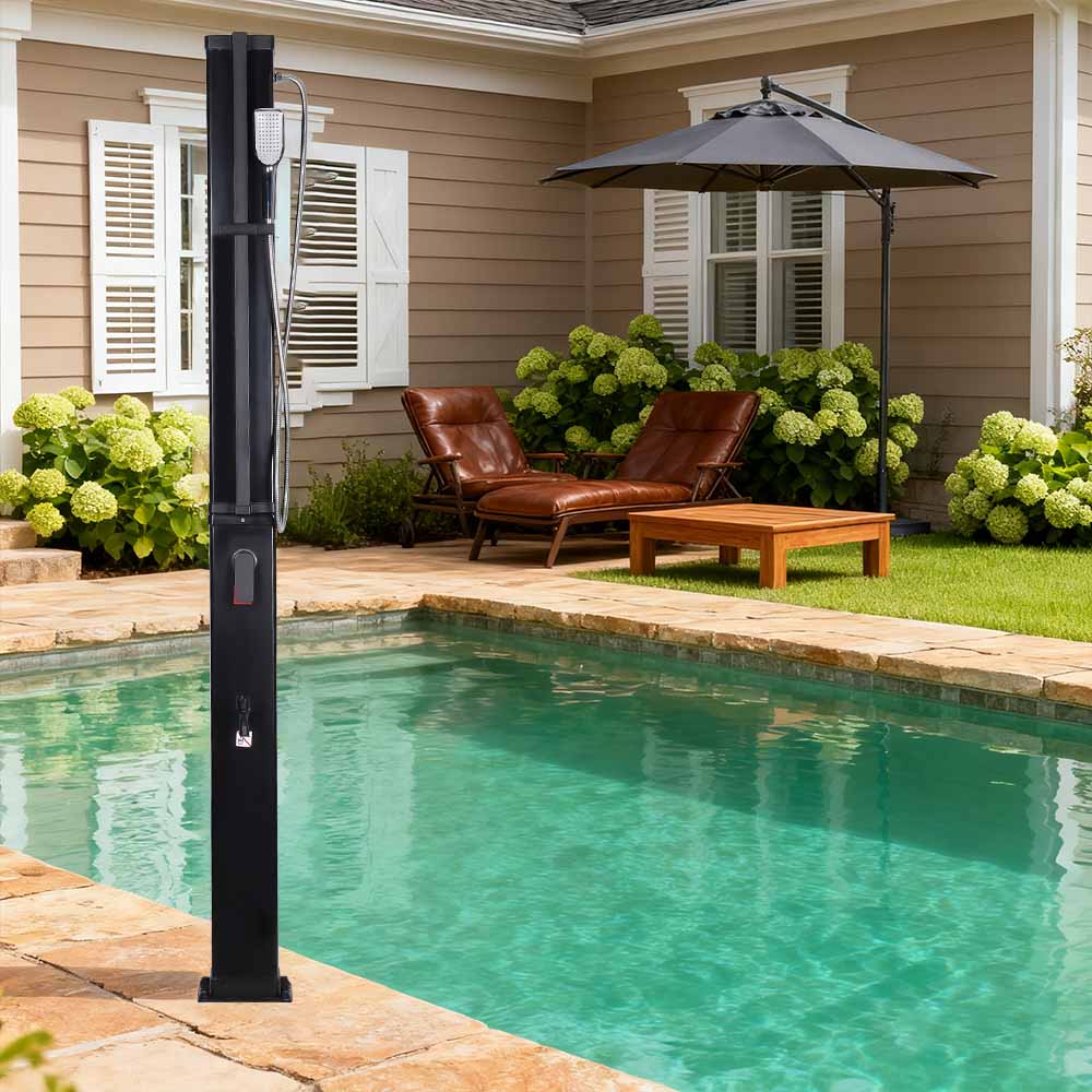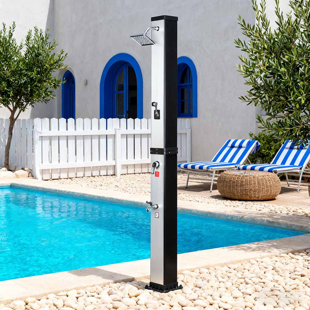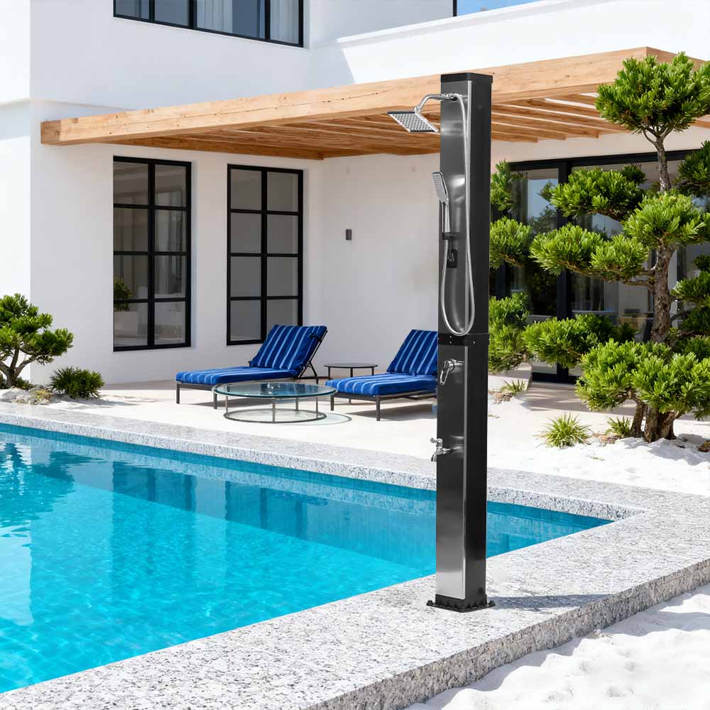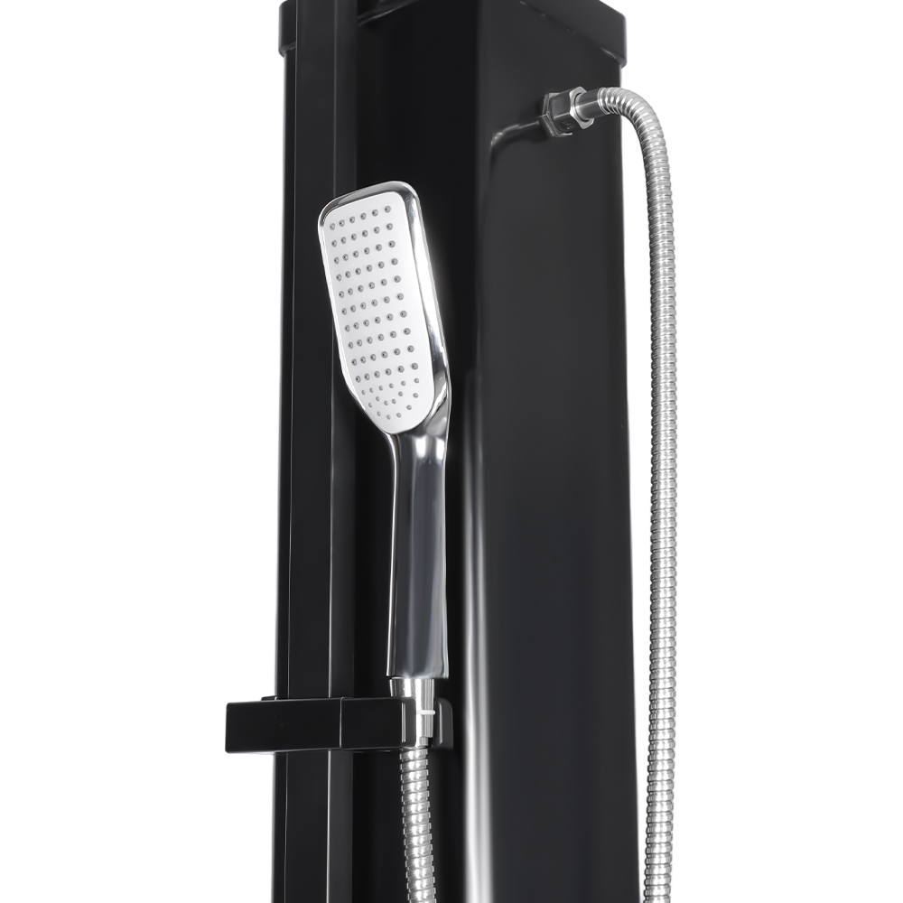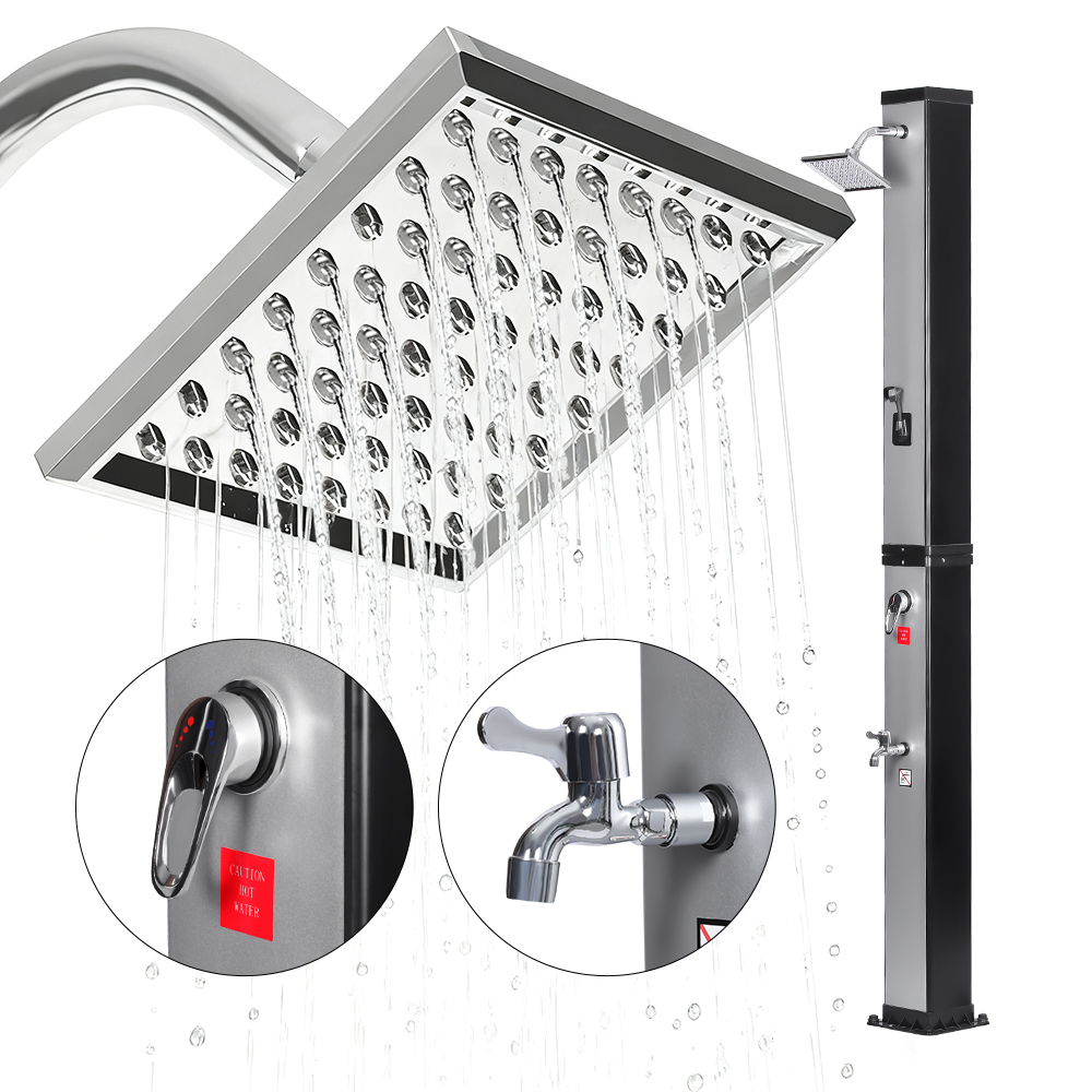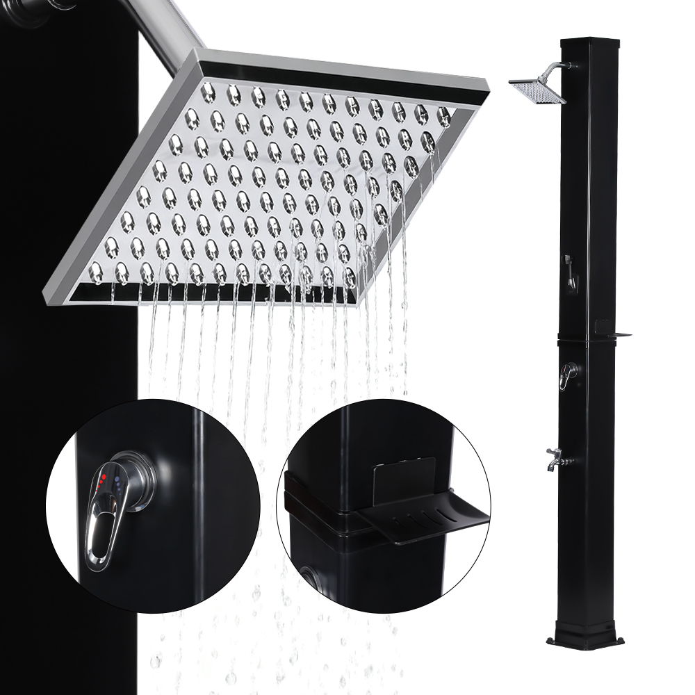 Ní úsáideann an cithfholcadh gréine ilfheidhmeach mór-acmhainn LY35L07 seo ach solas na gréine chun uisce a théamh suas go dtí 60 ° C, ag soláthar bealach coigilte fuinnimh agus neamhdhíobhálach don chomhshaol chun taitneamh a bhaint as snámha lasmuigh. Tá sé simplí é a líonadh - ní gá ach píobán caighdeánach gairdín a nascadh leis an góilín, agus éiríonn an píopa cithfholcadh réidh le húsáid go tapa. Tugann seilf miotail ionsuite áit áisiúil chun glóthach cithfholcadh agus bunghnéithe eile a stóráil, agus cinntíonn poill draenála ag an mbonn go sreabhann uisce go héifeachtach, agus an limistéar á choinneáil tirim agus slachtmhar. Deartha le solúbthacht i gcuimhne, tá an cith gréine seo foirfe do shuíomhanna éagsúla, cibé acu ar an trá, in aice leis an linn snámha, i dteach saoire, óstán nó bungaló. Ligeann a struchtúr solúbtha dó oiriúnú do thimpeallachtaí éagsúla.