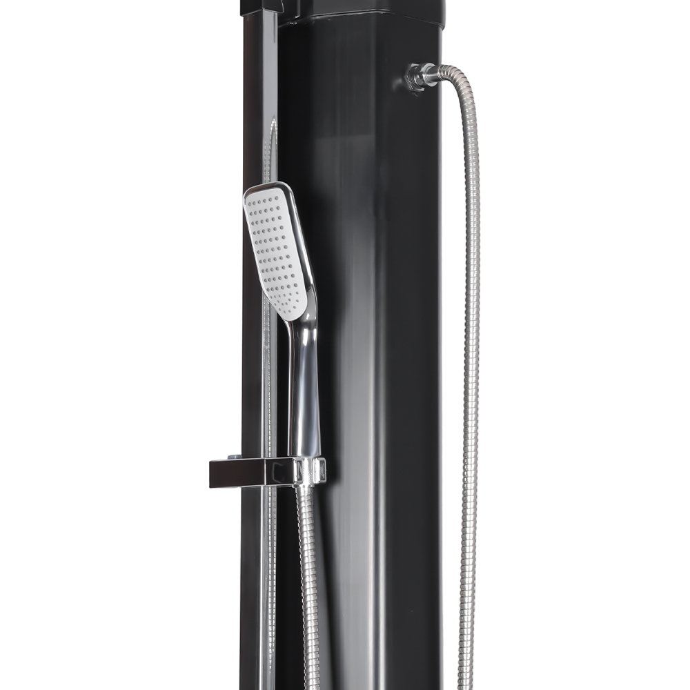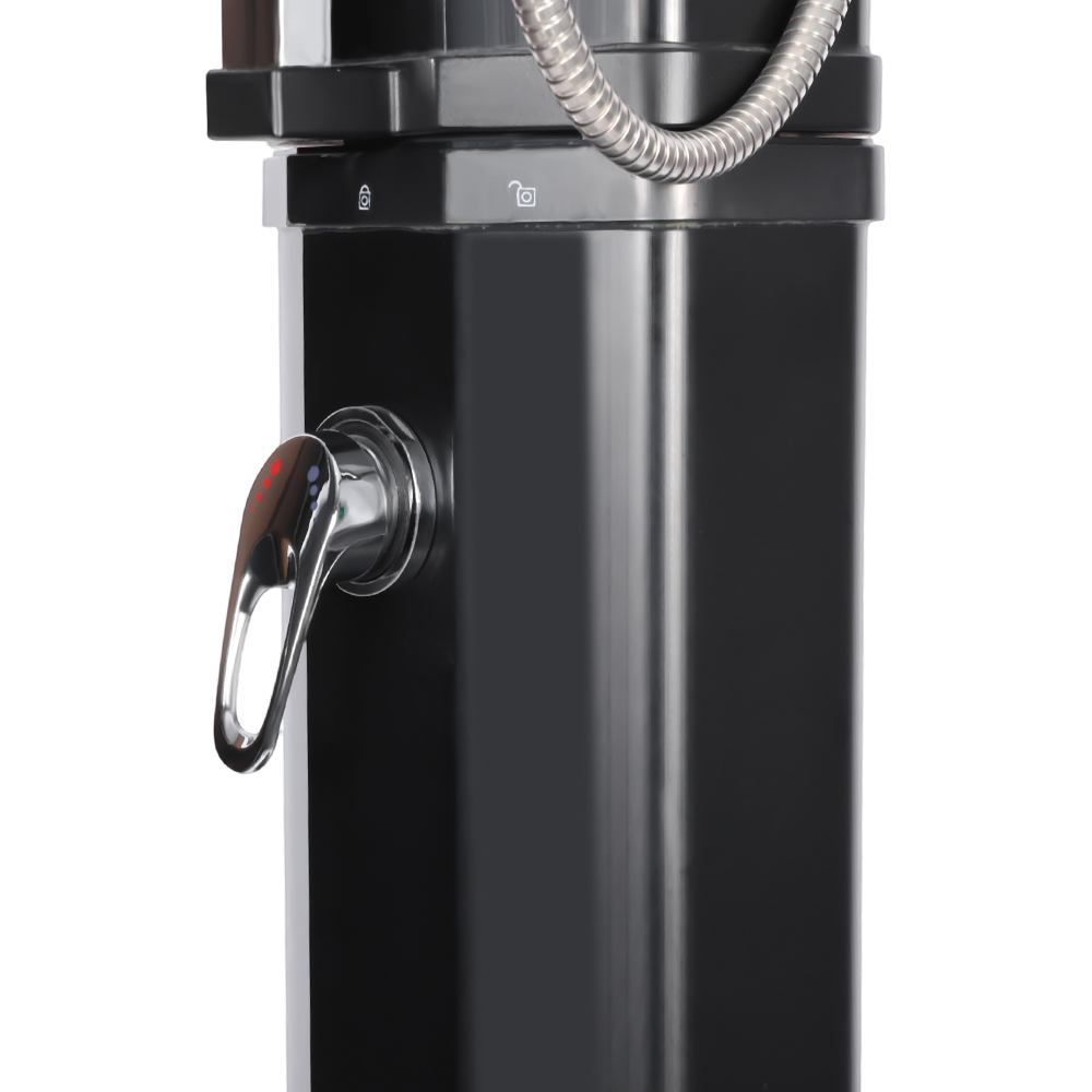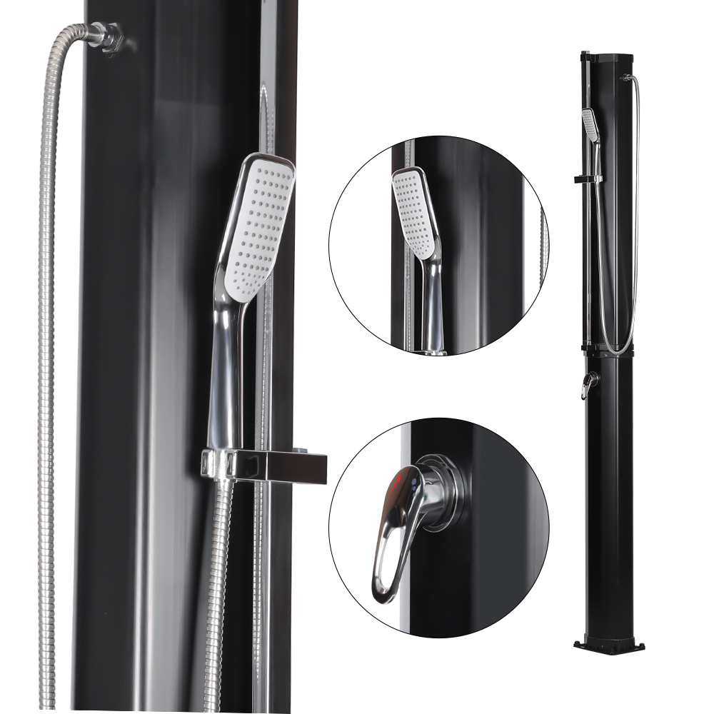 Feidhmíonn an cithfholcadh gréine gairdín mór-acmhainn cobhsaí agus éifeachtach LY35L08-HB seo go héifeachtach ag baint úsáide as solas na gréine. Déanann a phíobán cithfholcadh mór 35-lítear uisce a théamh go timpeall 60°C le dóthain solas na gréine. Is simplí é an t-athlíonadh, níl aon leictreachas ag teastáil uaidh, agus is féidir é a bhaint amach go héasca trí nascadh le píobán gairdín caighdeánach. Soláthraíonn a cheann cithfholcadh mór báistí eispéireas fuarú compordach, agus ligeann a chomhpháirteach liathróid chomhtháite dó sclóine suas go 180 ° le haghaidh uillinneacha éagsúla. Tá suiteáil an-áisiúil freisin. Tá an struchtúr iomlán déanta as plaisteach buan, UV-resistant, go héifeachtach in ainneoin nochtadh lasmuigh leathnaithe. Díchóimeáil an ceann cithfholcadh go tapa le haghaidh iompair éasca idir láithreacha nó stórála le linn seachshéasúir. Cinntíonn bonn miotail láidir cobhsaíocht agus sábháilteacht nuair a bhíonn tú suiteáilte, rud a ligeann duit taitneamh a bhaint as cithfholcadh compordach lasmuigh i do ghairdín, in aice leis an linn snámha, nó ag an láthair champála.